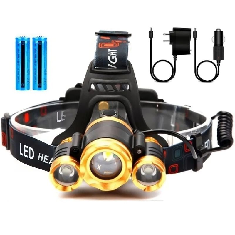 Lanterna de cap cu 3 LED-uri, incarcator masina si de retea, negru Lanterna de cap cu 3 LED-uri, incarcator masina si de retea, negru