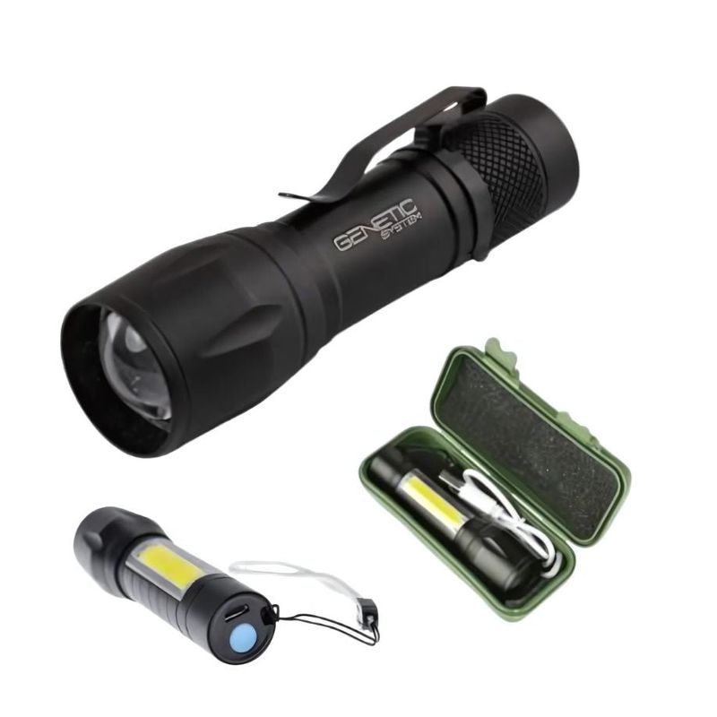 Lanterna LED CREE + COB cu functie de zoom este o unealta compacta si puternica, proiectata pentru a oferi iluminare eficienta in orice situatie. Cu o lungime de doar 10 cm si o carcasa din aluminiu rezistenta, aceasta lanterna este ideala pentru activitati in aer liber, camping, drumetii, pescuit, dar si pentru utilizare casnica sau profesionala.