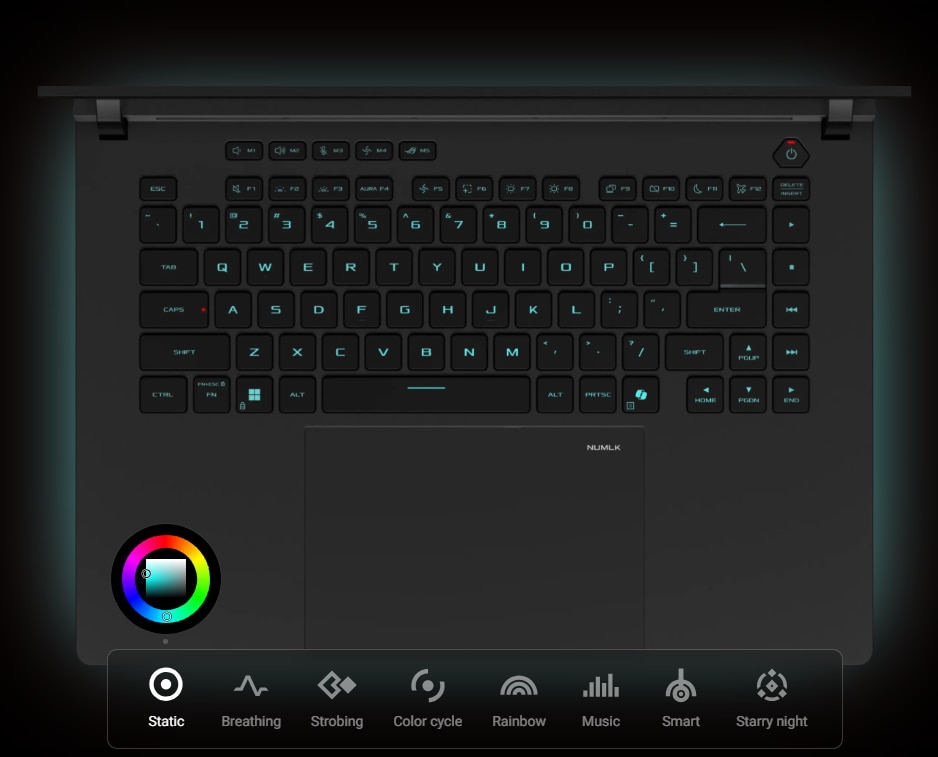 Tastele rapide dedicate pentru jocuri se afla chiar deasupra partii stangi a tastaturii pentru acces rapid la comenzile de volum si dezactivare a microfonului, moduri de operare si Armory Crate. De asemenea, sunt complet personalizabile si pot fi programate pentru a lansa aplicatii, setate ca tasta functionala sau pot fi utilizate ca o comanda macro. Strix SCAR 16 are toate instrumentele de care aveti nevoie pentru victorie.