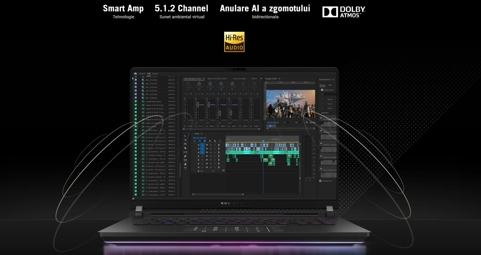 Difuzoarele cu Dolby Atmos includ doua tweetere si doua woofere orientate in jos pentru a crea o scena sonora autentica pentru jocurile tale. Hi-Res audio iti asigura auzul muzicii tale la aceeasi calitate la care a fost inregistrata. Anularea zgomotului AI bidirectionala proceseaza atat sunetul de intrare, cat si cel de iesire pentru a filtra orice zgomote de fundal eronate, asigurandu-se ca apelurile, chat-urile si fluxurile se desfasoara fara distragere.
