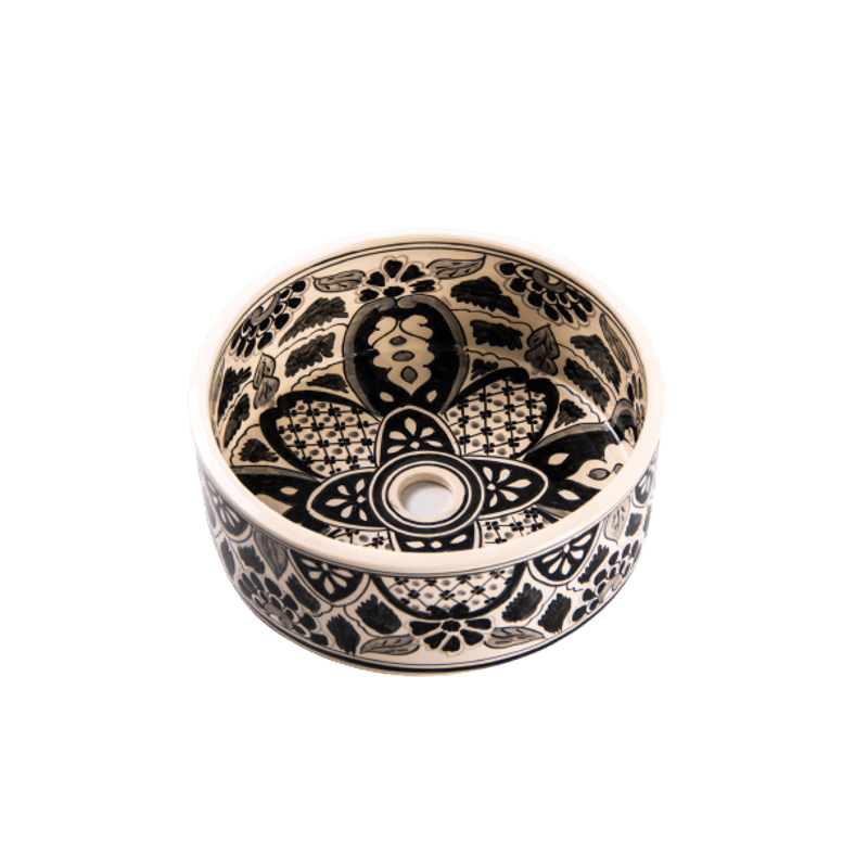 Lavoar rotund Rami, negru cu alb, din ceramica pictat manual, montaj pe blat 35 x 35 x 13 cm Lavoar rotund Rami, negru cu alb, din ceramica pictat manual, montaj pe blat 35 x 35 x 13 cm