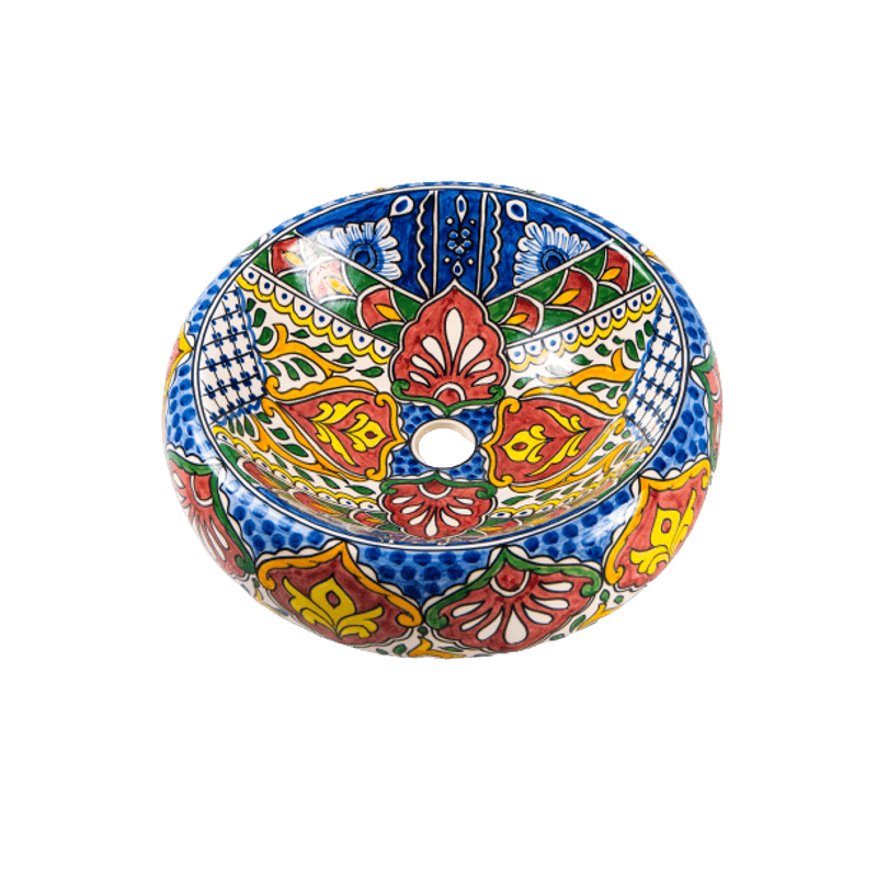 Lavoar rotund Sandra, multicolor, din ceramica pictat manual, montaj pe blat 43 x 43 x 13 cm Lavoar rotund Sandra, multicolor, din ceramica pictat manual, montaj pe blat 43 x 43 x 13 cm
