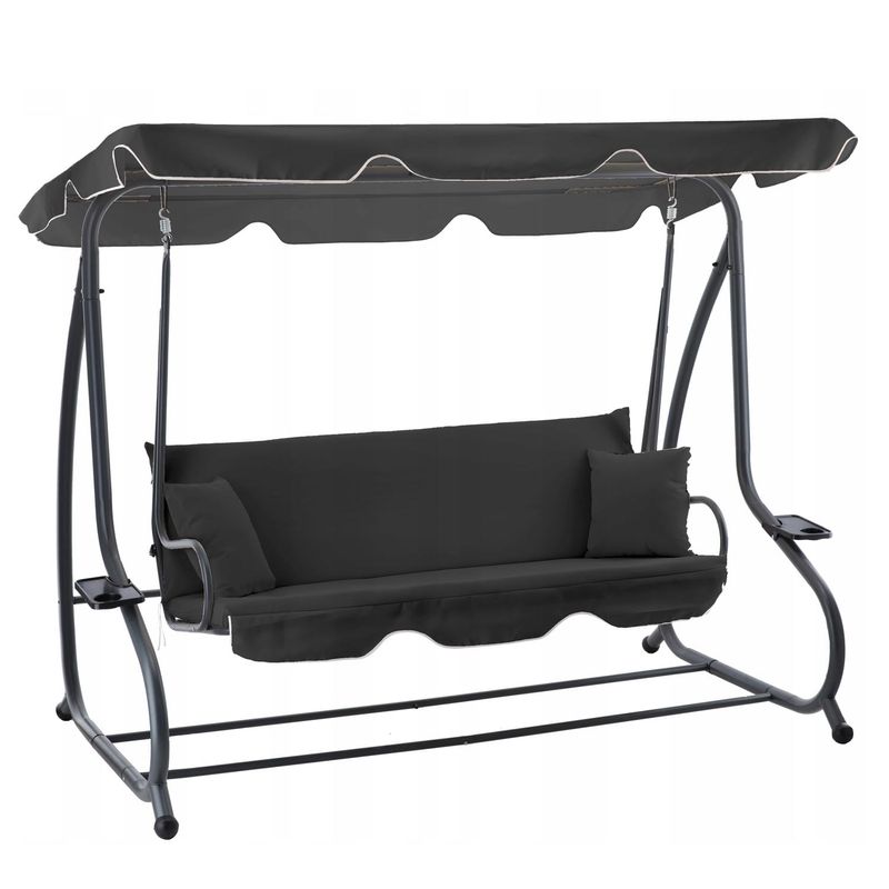 Leagan gradina 3 locuri cu baldachin reglabil, perne si suport pahare, 210x120x170 cm, gri inchis Leagan gradina 3 locuri cu baldachin reglabil, perne si suport pahare, 210x120x170 cm, gri inchis