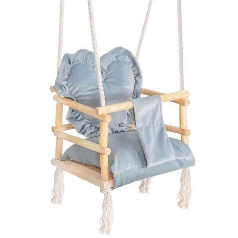 Leagan pentru copii, lemn, perna inima albastru deschis, 33.4x34.5x25 cm, Springos Leagan pentru copii, lemn, perna inima albastru deschis, 33.4x34.5x25 cm, Springos
