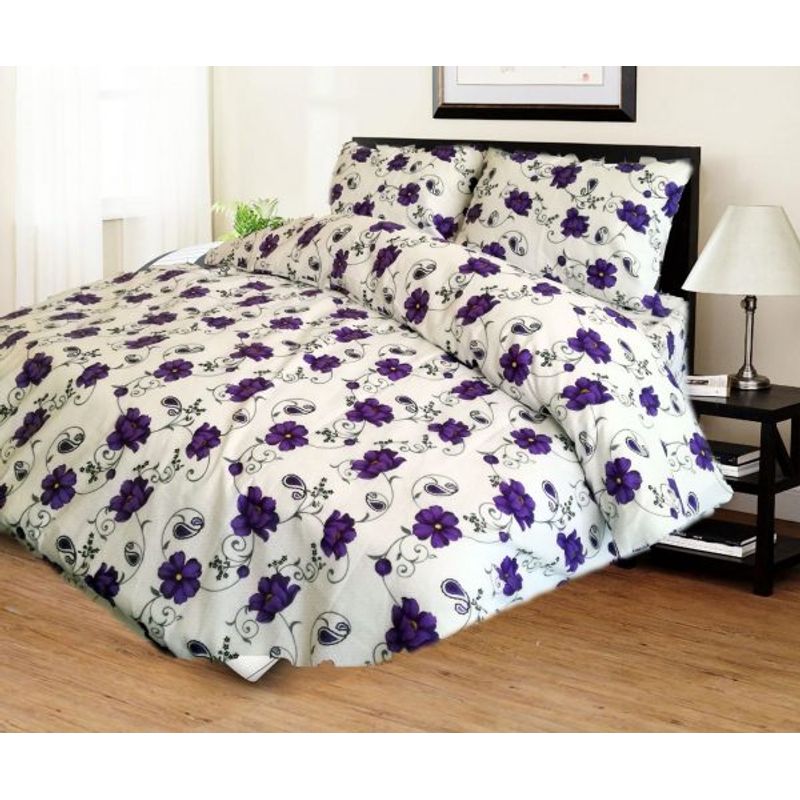 Lenjerie de pat 4 piese, 2 persoane, tesatura clasica neteda, 100% bumbac, decor floral - 01 Lenjerie de pat 4 piese, 2 persoane, tesatura clasica neteda, 100% bumbac, decor floral - 01