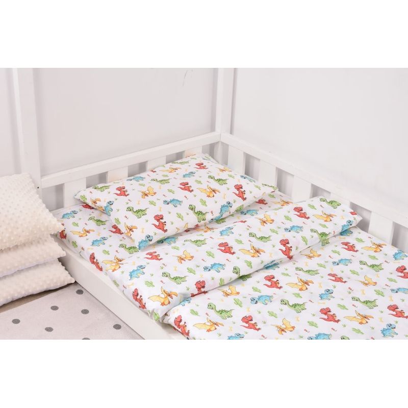 Lenjerie pat 90x200 cm, 3 piese model dinozauri Lenjerie pat 90x200 cm, 3 piese model dinozauri