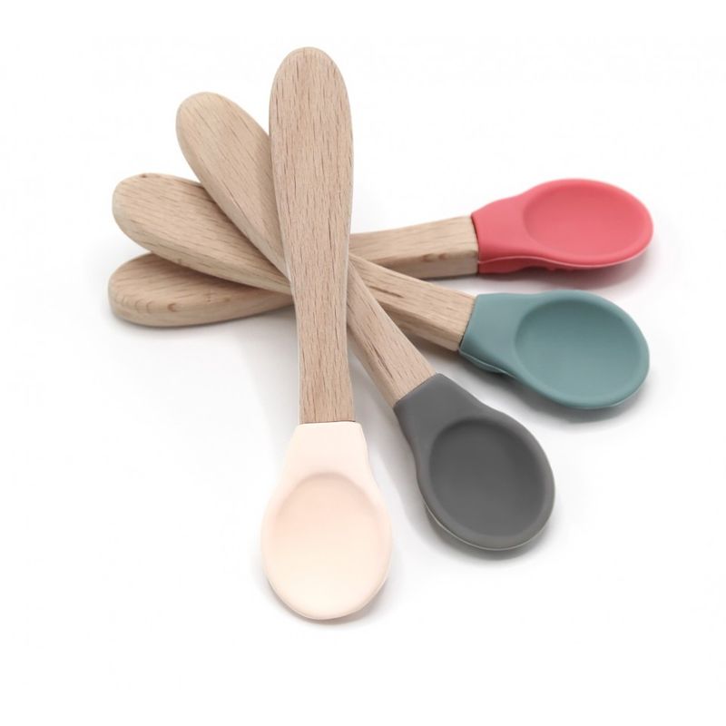 Lingurita cu maner din lemn si varf rotunjit din silicon BabyJem Lingurita cu maner din lemn si varf rotunjit din silicon BabyJem (Culoare: Gri)
