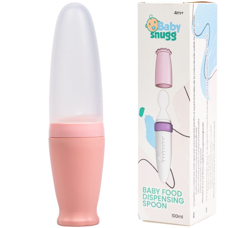 Lingurita de silicon cu rezervor Babysnugg, Fara BPA, Portabila Lingurita de silicon cu rezervor Babysnugg, Fara BPA, Portabila, Roz