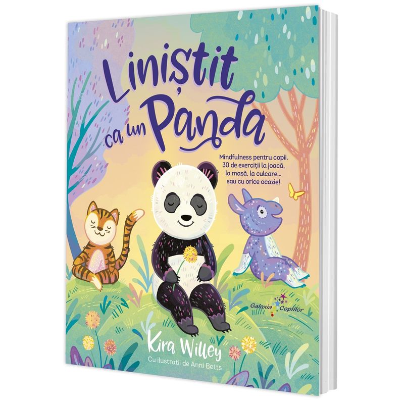 30 de exercitii la joaca, la masa, la culcare... sau cu orice ocazie! Autoarea cartii Respira ca un ursulet a creat un nou set de exercitii de meditatie concise, cu durata de aproximativ un minut, jucaus ilustrate si captivant redate, menite sa ii ajute pe copii sa integreze mindfulnessul in rutina zilnica. Ti-ai dori sa ai o legatura mai stransa si mai plina de insemnatate cu copilul tau? Ti-ar placea ca cel mic sa fie mai putin stresat, agitat si tensionat? Te-ai bucura sa il ajuti sa se concentreze cu usurinta si sa isi depaseasca anxietatea? Ti-ai propus sa il sustii in activitatile lui creative si sa il incurajezi sa isi dezvolte imaginatia? Mindfulnessul atentia indreptata constient, cu bunavointa si cu interes asupra clipei de fata este solutia ideala. Iar lista beneficiilor nu se rezuma la lista de mai sus. Meditatia practicata cu regularitate asigura un somn mai odihnitor, intareste sistemul imunitar, amelioreaza simptomele depresiei, ajuta la dezvoltarea unor relatii armonioase cu cei din jur si la consolidarea increderii de sine. Exercitiile de mindfulness din aceasta carte sunt scurte, amuzante, si au fost concepute pentru a fi practicate cu consecventa. Fiecare capitol este impartit in functie de momentele si provocarile fiecarei zile. Incepeti ziua intr-o nota calma si luminoasa, cu Respira ca un soare“; sau incarcati-va de energie cu Bataitul de trezire“. Stimulati-va mintea cu Respiratia de bufnita“ si radeti pe saturate la ora de joaca, cu Hiena Ha-ha!“. Daca v ati propus sa adoptati in familie tehnica mancatului constient, o sa va placa exercitiul De unde vine?“, caci se refera la calatoria pe care mancarea o parcurge pana in farfuriile voastre. Iar cand vine ora de culcare, Noapte buna, griji!“ il ajuta pe cel mic sa-si uite chiar toate grijile, asigurandu-i un somn linistit. Bonus: parcurgand alaturi de copilul tau aceste exercitii de mindfulness, te vei bucura si tu de efectele lor grozave! De asemenea, cartea de fata reprezinta un instrument minunat si pentru educatori, profesori si alti adulti implicati in cresterea, ingrijirea si educarea copiilor. Imaginati-va o generatie noua: copii care vor creste avand deja puterea de a face fata stresului si anxietatii, copii capabili sa reactioneze cumpanit in situatiile dificile, copii care se cunosc suficient de bine incat sa-si gestioneze eficient sentimentele si comportamentul. Ce sansa colosala de a schimba viitorul! Incepand din clipa aceasta, puteti contribui la crearea unui astfel de nou viitor. Kira Willey Cod produs 978-606-796-171-3 Greutate 0.2200 Autor(i): Kira Willey, Editura : Galaxia Copiilor Data aparitiei 25 iul. 2022 Traducator(i): Ioana Vacarescu Ilustrator(i): Anni Betts Nr. de pagini : 96 Format : 19 x 23 cm Coperta : Flexibila Legatorie : Brosata Interior Policromie