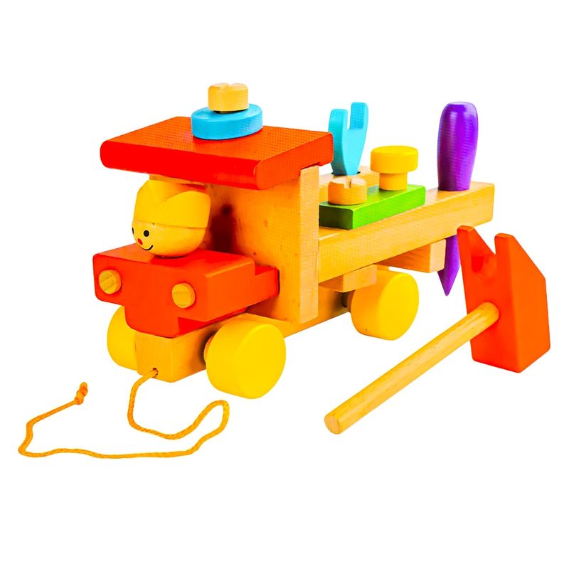 Locomotiva din lemn demontabila, Jucarie de tras Locomotiva din lemn demontabila, Jucarie de tras