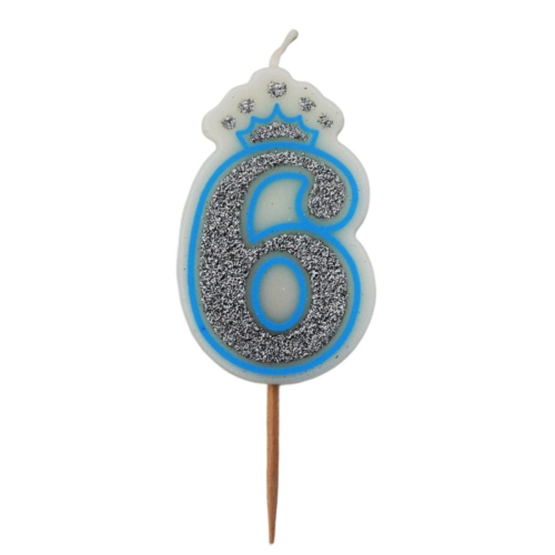Lumanare aniversara albastra glitter cifra 6 Lumanare aniversara albastra glitter cifra 6