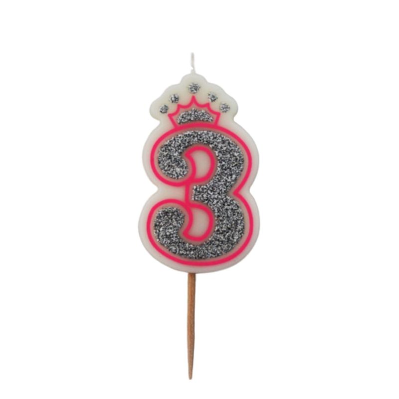 Lumanare aniversara roz glitter cifra 3 Lumanare aniversara roz glitter cifra 3