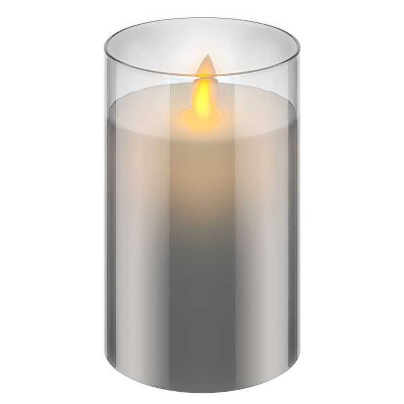Lumanare LED alba intr-un pahar gri, dimensiuni 7,5 x 12,5 cm