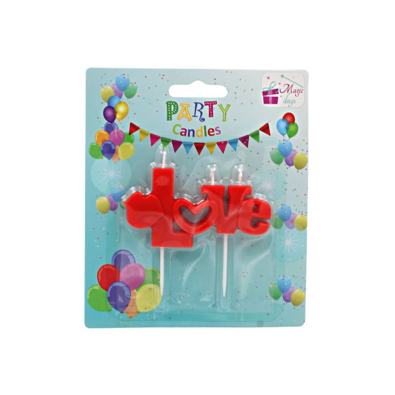 Lumanare party model LOVE litere rosii