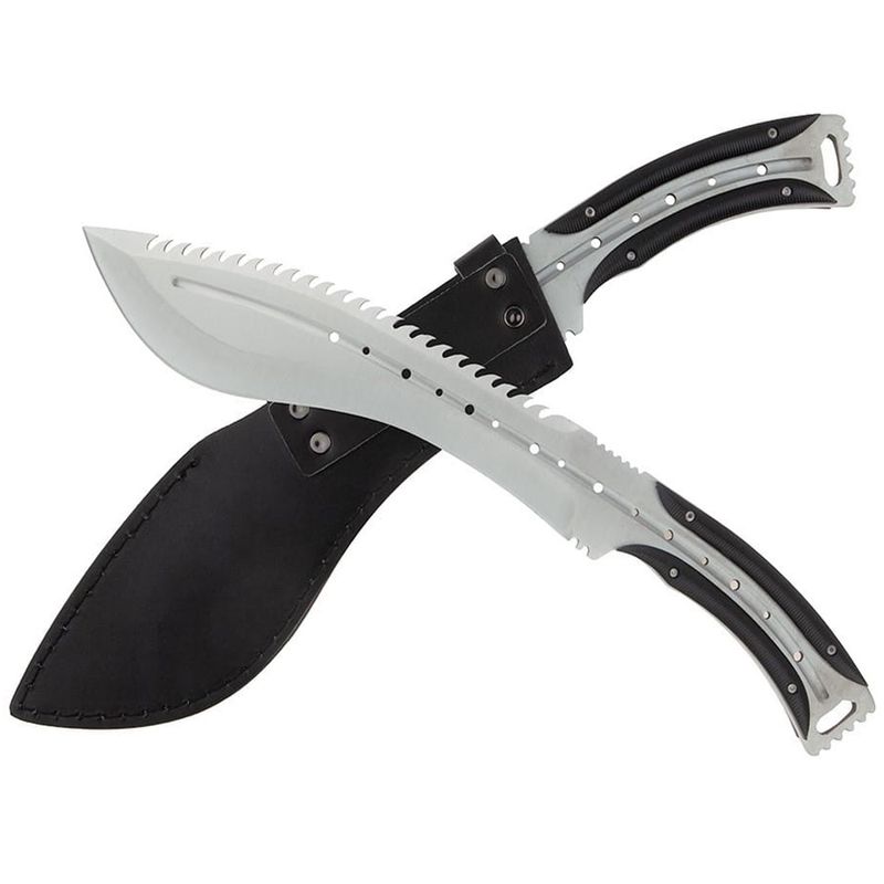 Unul dintre cele mai raspandite si dorite maceta sunt aici! Datorita stilului aparte de prelucrare, acesta maceta tip kukri este unica si poate fi la indemana oricarei persoane indiferent de tipul de utilizare. Model clasic cu un maner din otel acoperit cu un cauciuc durabil ce ajuta la un grip mai eficient in orice conditie.