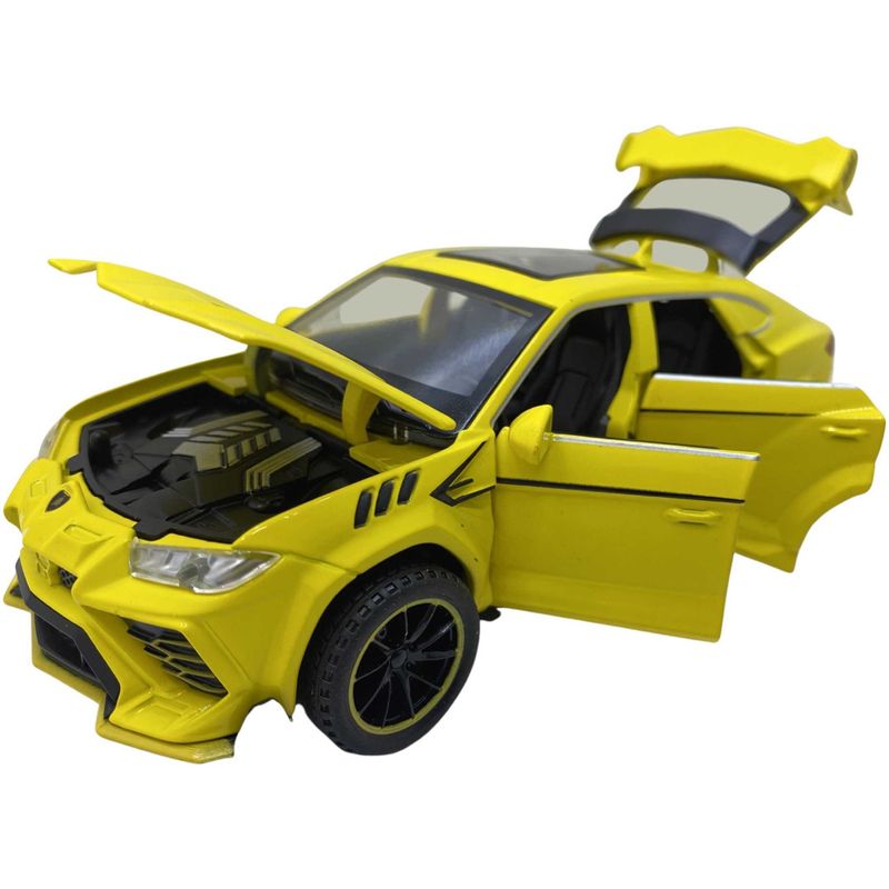 Macheta replica Lamborghini Urus galben deschide 4 usi, prtbagaj si capota, lumini si sunete