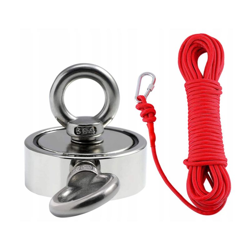 Magnet cu neodim, 240 kg, Sfoara cu carabina, 20 m, Argintiu/Rosu Magnet cu neodim, 240 kg, Sfoara cu carabina, 20 m, Argintiu/Rosu