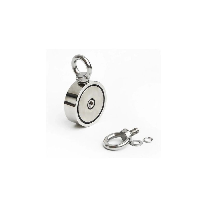 Acest magnet de 75 mm cu două cârlige inelare și două fețe combină perfect puterea de atracție și versatilitatea, fiind un instrument esențial pentru orice pasionat de pescuit magnetic sau pentru cei care au nevoie de o soluție magnetică puternică în diverse aplicații. Construcția robustă din neodim și designul cu două cârlige îl fac ușor de utilizat și de adaptat la multiple sarcini, oferindu-ți atât putere, cât și funcționalitate într-un singur produs.