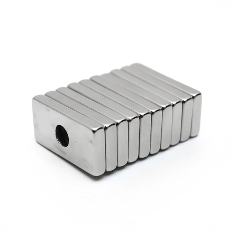 Magnet puternic neodim bloc 20 mm x 10 mm x 3 mm cu gaura de sustinere de 4 mm diametru Magnet puternic neodim bloc 20 mm x 10 mm x 3 mm cu gaura de sustinere de 4 mm diametru