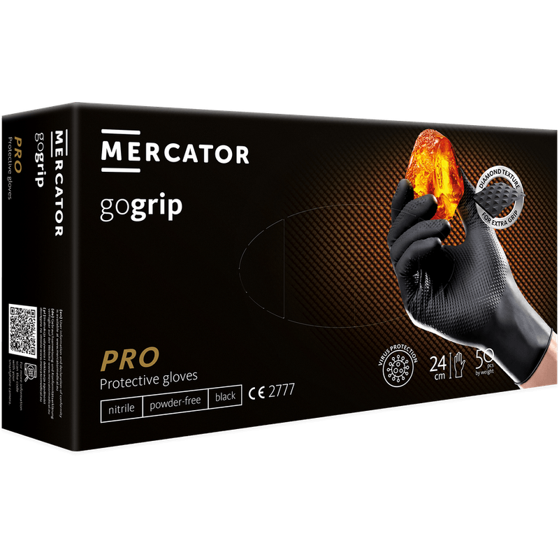 Manerele extrem de elastice MERCATOR® sunt de 2 ori mai groase decat manusile standard disponibile pe piata. Aceste manusi durabile din nitril au o textura unica de diamant 3D, care va face aderenta puternica si stabila, fara a va limita precizia. Structura originala MERCATOR® gogrip inseamna ca puteti utiliza dispozitivele mobile fara sa va scoateti manusile. in plus, textura revolutionara de diamant 3D previne transpiratia mainilor in timpul utilizarii, ceea ce creste confortul de lucru, minimizand riscul de deteriorare a pielii mainilor.