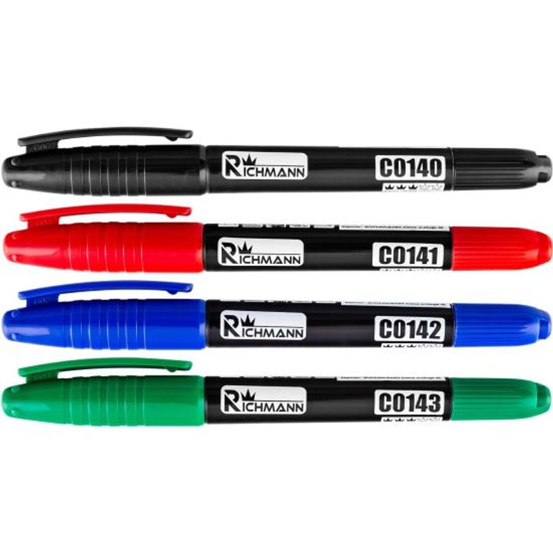 Marker permanent subtire, 2 capete, 4 culori, (set 36 buc), RICHMANN Marker permanent subtire, 2 capete, 4 culori, (set 36 buc), RICHMANN