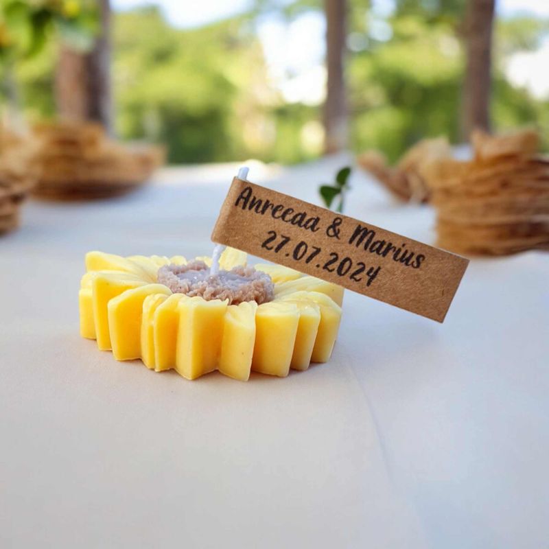 Marturii de Nunta, lumanare floarea soarelui, eticheta personalizata Marturii de Nunta, lumanare floarea soarelui, eticheta personalizata