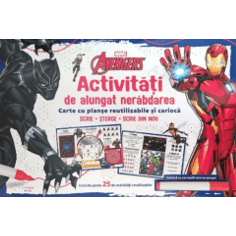 Marvel Avengers. Activitati de alungat nerabdarea. Carte cu planse reutilizabile si carioca Marvel Avengers. Activitati de alungat nerabdarea. Carte cu planse reutilizabile si carioca
