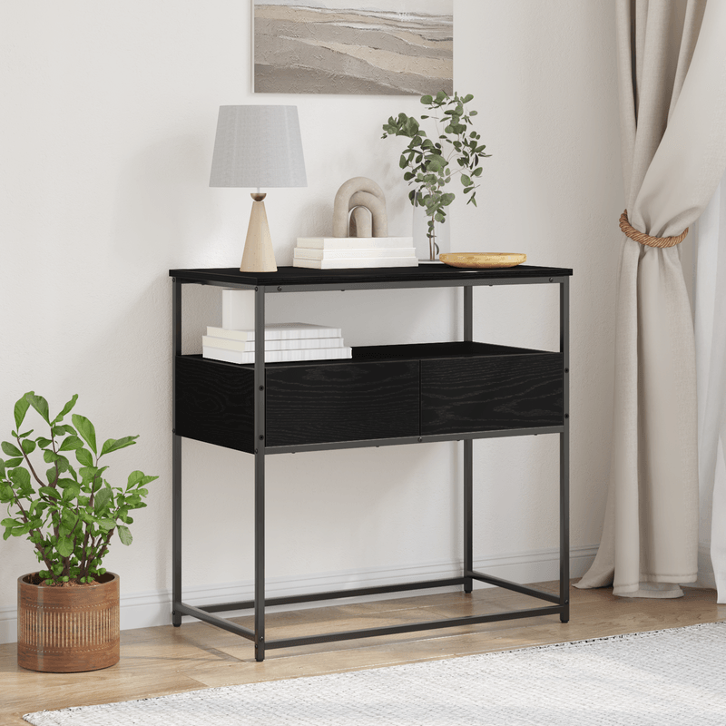 Masuta consola, stejar negru 75x40x75 cm lemn prelucrat si otel Masuta consola, stejar negru 75x40x75 cm lemn prelucrat si otel