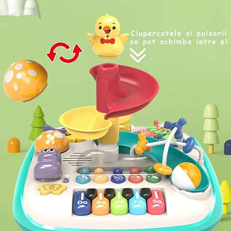 Masa educativa pentru copii multifunctionala WePro Store, tobogan si pian, Sunete si Lumini, ratusca, minge, 3 ani + Masa educativa pentru copii multifunctionala WePro Store, tobogan si pian, Sunete si Lumini, ratusca, minge, 3 ani +