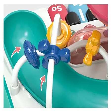 Masa are un tobogan distractiv cu minge, un pian pentru copii cu 5 clape, animale simulate, chei pentru unelte, un hipopotam cu gura deschisa, o barca cu vasle si margele rulante.. Luminile si sunetele adauga emotie si interactivitate timpului de joaca al bebelusului tau. Potrivit pentru bebelusii cu varsta cuprinsa intre 6-36 de luni, acest centru de activitati poate fi savurat stand pe podea sau stand in picioare in timp ce invata sa mearga.