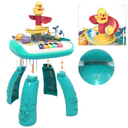 Masa educativa pentru copii cu pian si tobogan WePro Store, Sunete si Lumini, ratusca, minge, 3 ani +