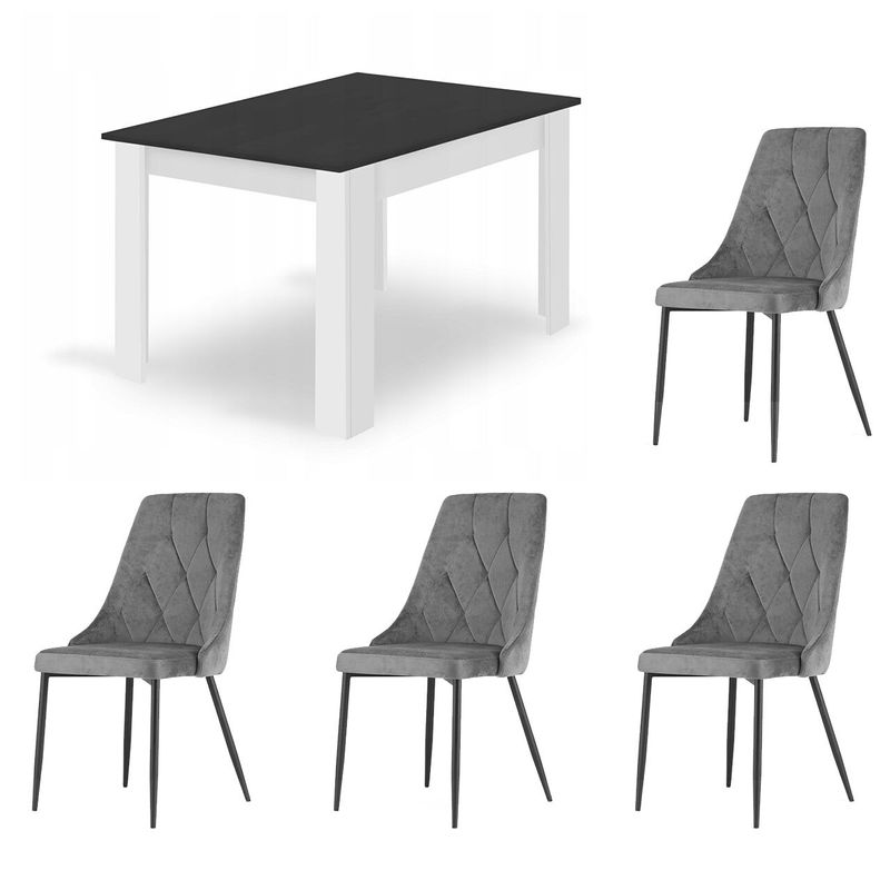 Masa pentru sufragerie/living + 4 scaune Imola, Artool, lemn, alb si negru, 120x80x75 cm Masa pentru sufragerie/living + 4 scaune Imola, Artool, lemn, alb si negru, 120x80x75 cm