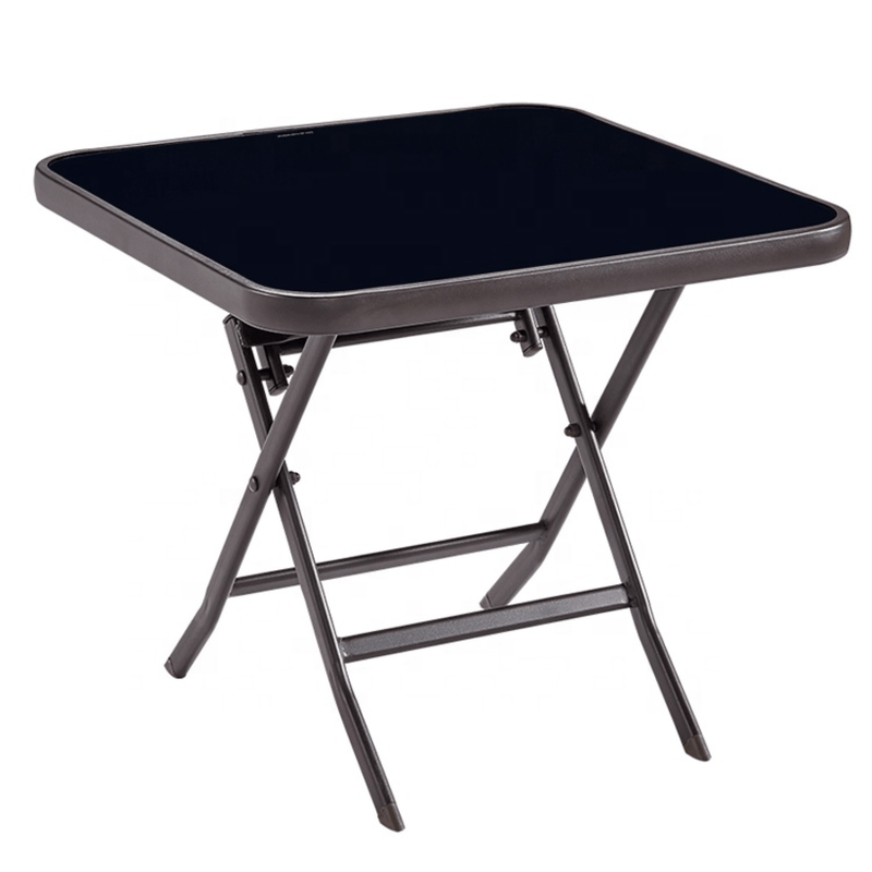 Masa pliabila exterior 80x80 cm 4 persoane – metal si sticla neagra rezistenta Masa pliabila exterior 80x80 cm 4 persoane – metal si sticla neagra rezistenta