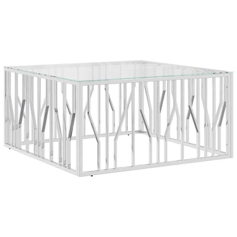 Masuta de cafea, 100x100x50 cm, otel inoxidabil și sticla, argintiu Masuta de cafea, 100x100x50 cm, otel inoxidabil și sticla, argintiu