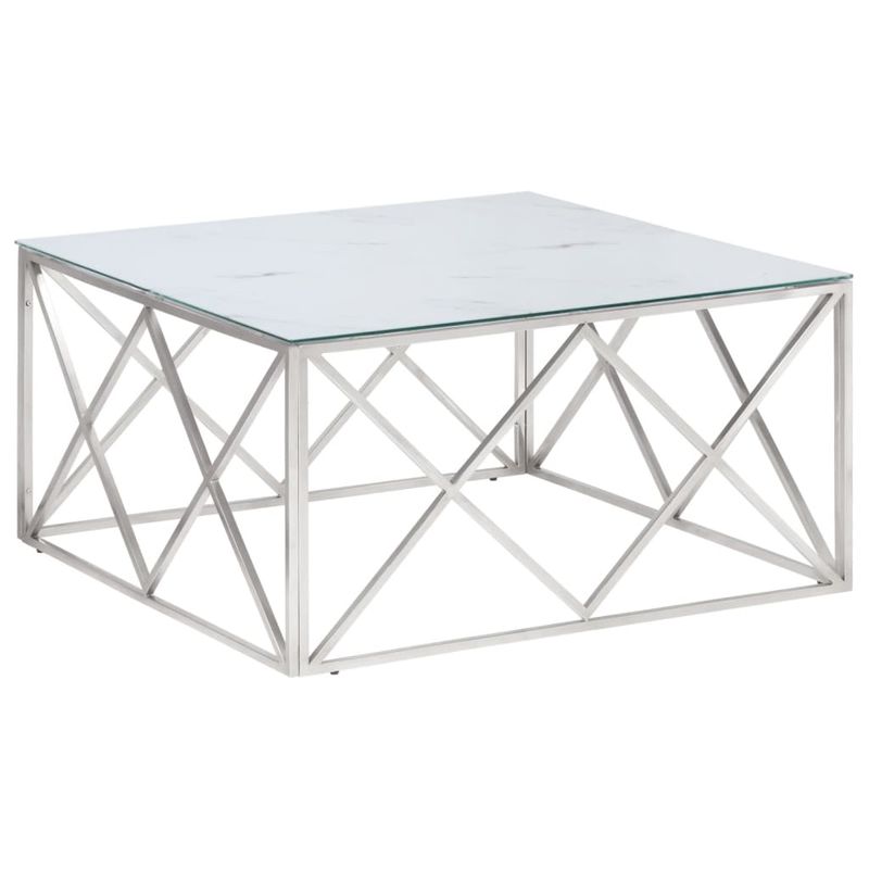 Masuta de cafea, argintiu, otel inoxidabil si sticla securizata Masuta de cafea, argintiu, otel inoxidabil si sticla securizata