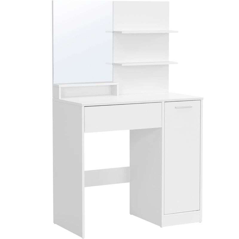 Masuta de toaleta cu oglinda, dulap si sertar pentru cosmetice, 80x40x132cm, alb Masuta de toaleta cu oglinda, dulap si sertar pentru cosmetice, 80x40x132cm, alb