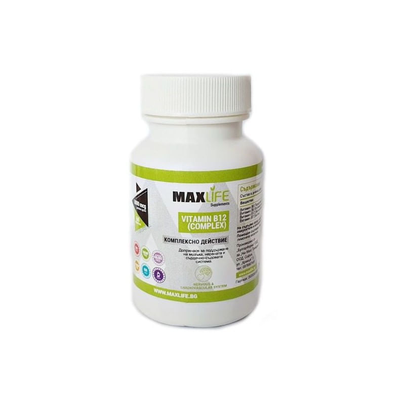 In formula MAXLife Vitamina B12 Complex, alaturi de vitamina B12 regasim: Acidul Folic (Vitamina B9), Vitamina B6 si Vitamina B7.