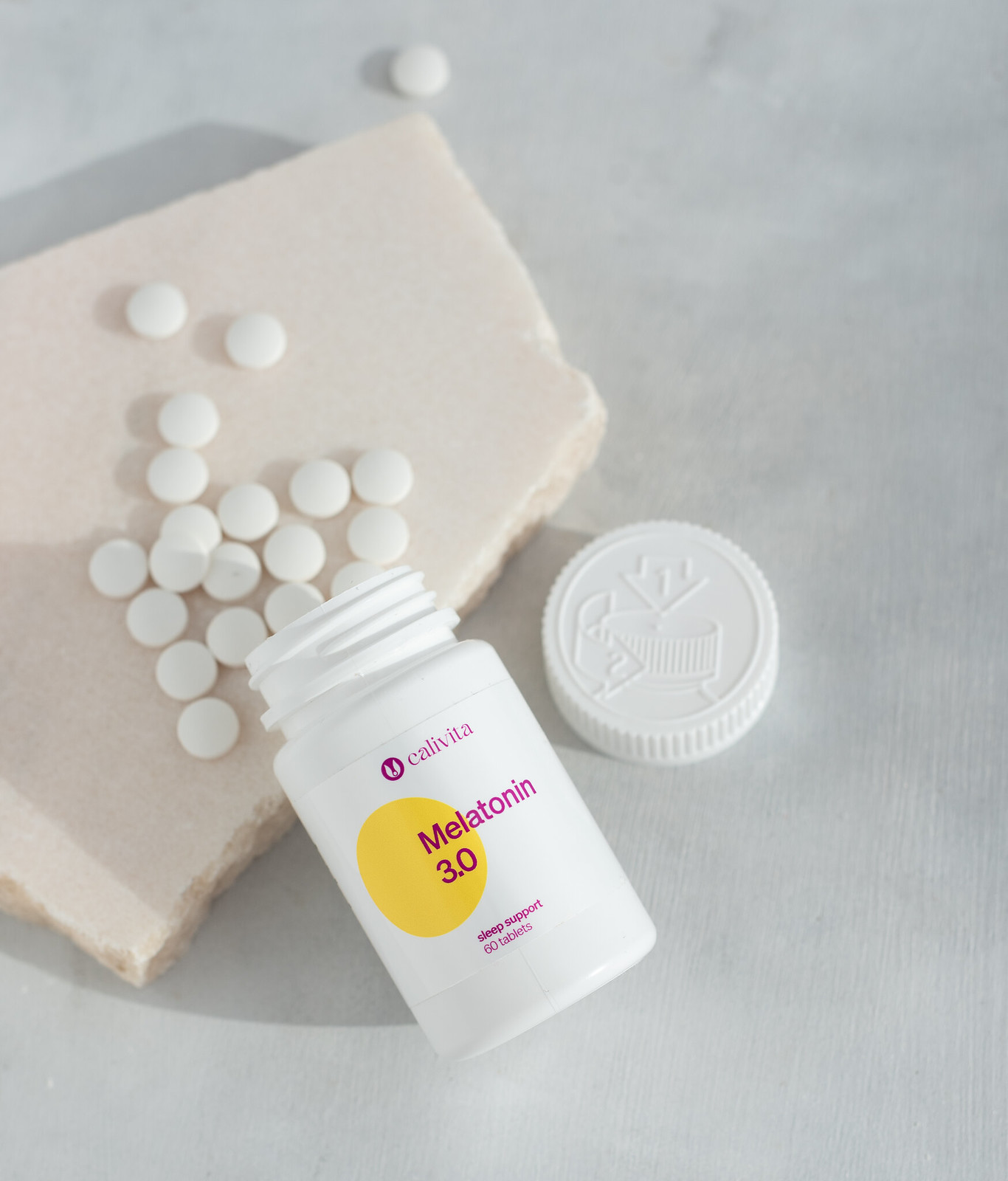 Tabletele noastre Melatonin va pot ajuta sa va bucurati de un somn relaxant si contribuie la restabilirea ritmului biologic. In plus, melatonina poate fi de ajutor, daca incercati sa renuntati la fumat*, si poate creste eficienta anumitor tratamente pentru cancer, in vreme ce reduce efectele adverse ale acestora.** De asemenea, inhiba procesul de imbatranire a pielii.***