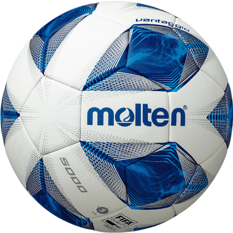 F5A5000 lanseaza noua generatie de mingi fotbal Molten. F5A5000 este o minge de competitie de top, FIFA QUALITY PRO, este realizata cu ajutorul tehnologiei ACENTEC - Accuracy Enhancing Technology, realizata prin, , fusion cross'', , , new unified outer layer", , , enhanced multi-layer architecture'' si, , optimized panel construction''. . Mingea are 32 de pentagoane lipite – sudate –cu ajutorul tehnologie ACENTEC, din piele sintetica PREMIUM PU foarte rezistenta, placuta la atingere si contact. Camera este realizata din cauciuc natural, cu un model nou de valva (supapa) ce reduce frecarea la uflare, cu mai putin de 40% comparativ cu modelele Vantaggio anterioare, astfel valva este cu mult mai rezistenta in timp. Utilizand o tehnologie unica, patentata Molten, de termo-lipire care imbunatateste pastrarea formei mingii si minimizeaza absorbtia apei pastrandu-si greutatea, rezultand o minge cu o performanta exceptionala indiferent de conditiile terenului. Noua finisarea a suprafetei texturate (prezinta o structura cu puncte in relief, simetrice cu rol aerodinamic) optimizeaza zborul mingii, asigurand un zbor stabil, permitand jucatorilor pase precise. Noul design, continua conceptul Vantaggio, reprezetand, , Flacara pasiunii''. In plus, contrastul dintre designul grafic si sectiune alab ofera jucatorilor si spectatorilor vizibilitate maxima a mingii.