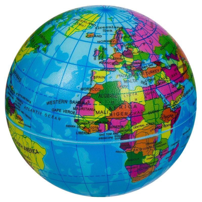 Minge jucarie pu, glob pamantesc, diametru 10 cm, multicolor Minge jucarie pu, glob pamantesc, diametru 10 cm, multicolor