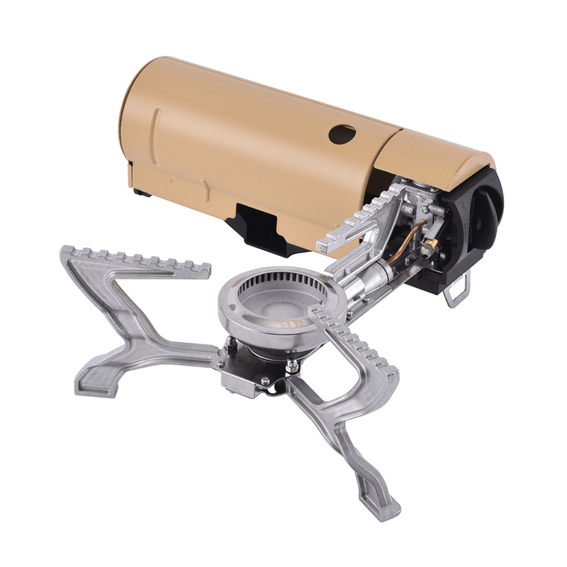 Sport si OutdoorCampingBucatarie de campingArzatoare si accesoriiMini Aragaz Portabil pentru Camping, Soferii de Camion/Auto, Pliabil cu Rezerva de Gaz Butan, 2600 W, Husa inclusa, Bej