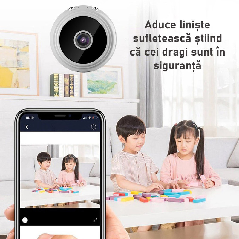 Supravegheati-va casa in timp real cu camera fara fir Spionescu HD A9. Bucurati-va de redare video 1080p de inalta definitie si inregistrare direct pe smartphone, asigurandu-va ca sunteti mereu conectat si constient de ceea ce se intampla acasa.