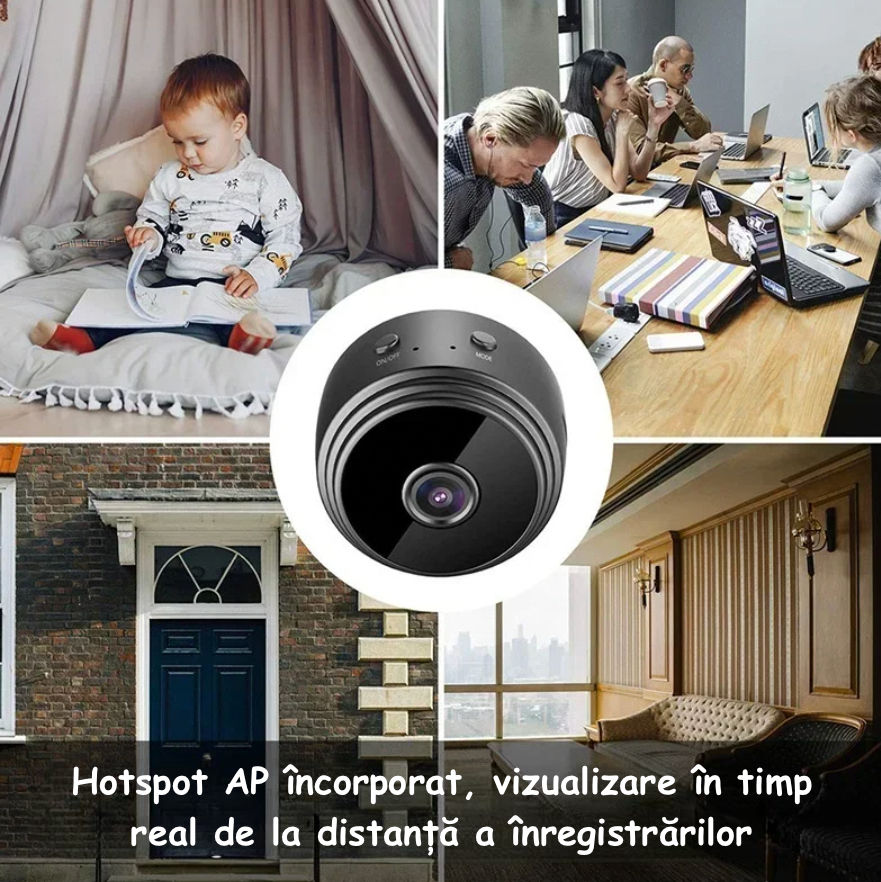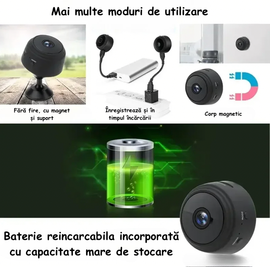 Mini Camera Spion ambrasmart, Suport magnetic, Night-Vision, Interior si exterior, Inalta definitie, fara fir, Negru Mini Camera Spion ambrasmart, Suport magnetic, Night-Vision, Interior si exterior, Inalta definitie, fara fir, Negru