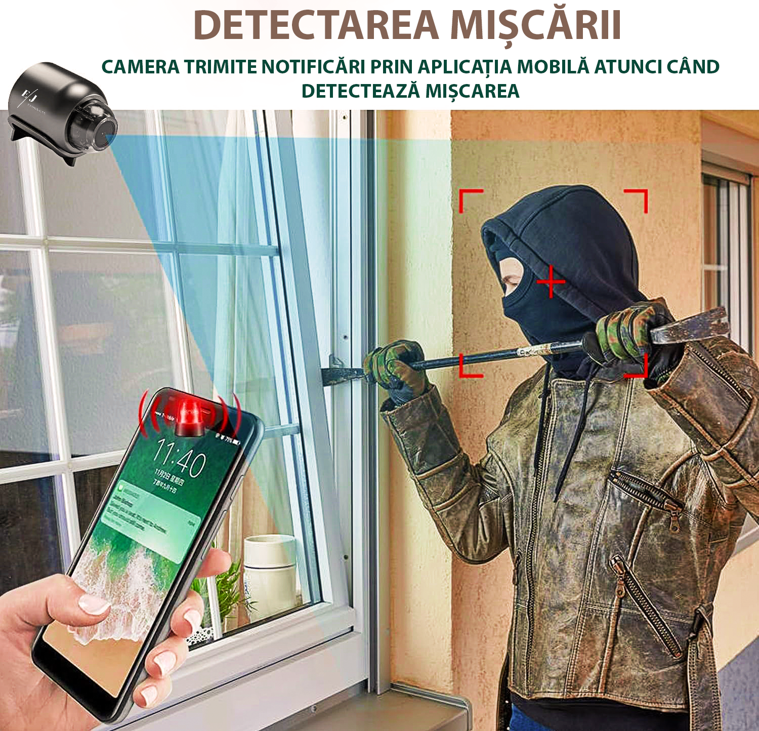 Cu functia sa de vedere pe timp de noapte si detectorul de miscare, mini camera WiFi X5 iti asigura o supraveghere neintrerupta si precisa, chiar si in intunericul noptii. Fiecare miscare este capturata si inregistrata, iar tu vei primi alerte instantanee pe telefonul tau pentru a fi mereu la curent cu ceea ce se intampla.