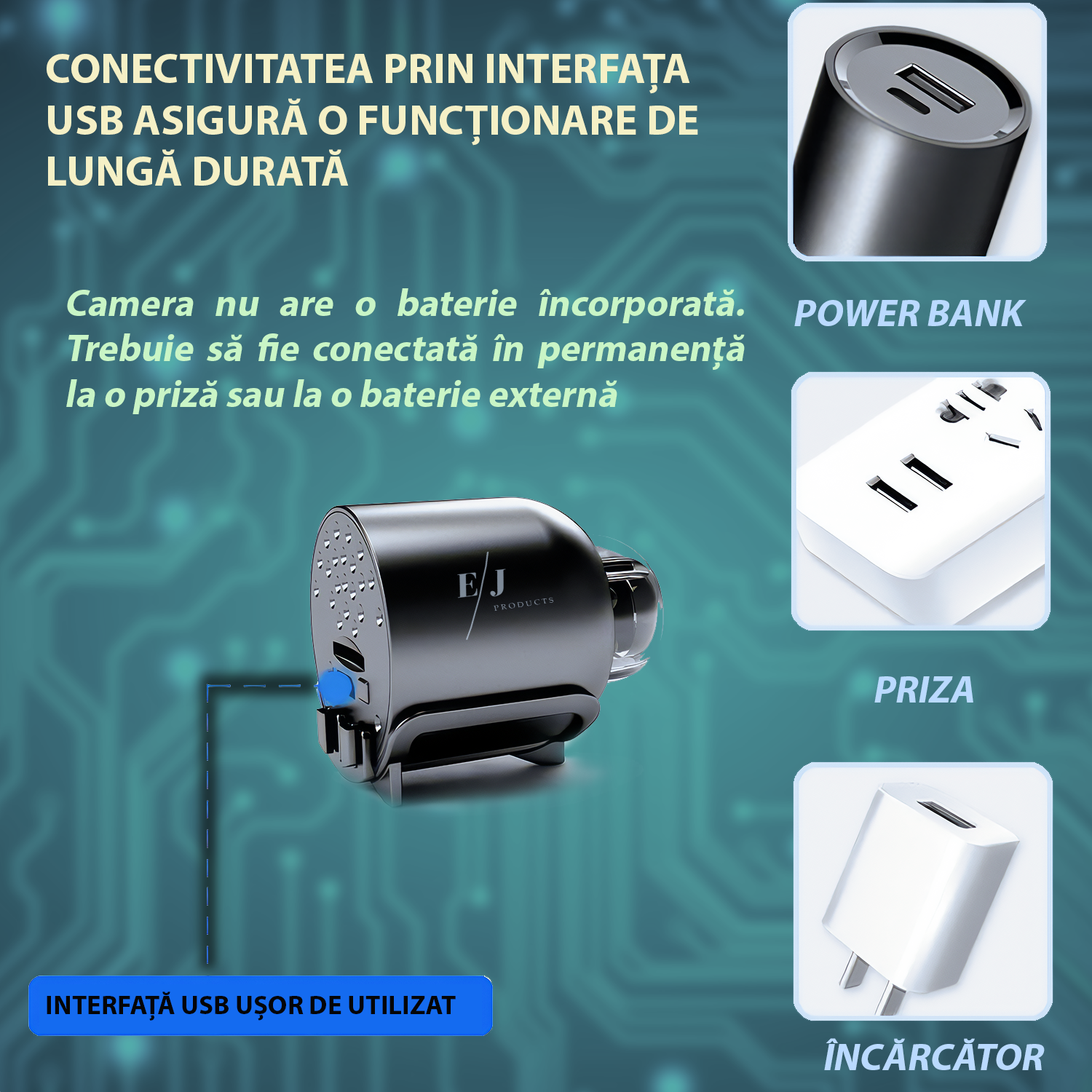 Mod de alimentare: alimentare cu baterie externa sau adaptor/incarcator dispozitive mobile