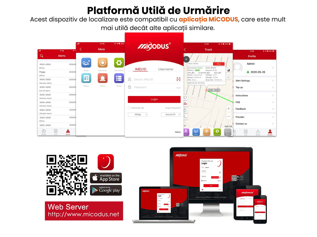 ✔️ Alerte multiple – depasire viteza, miscare, scoatere dispozitiv, iesire din zona prestabilita