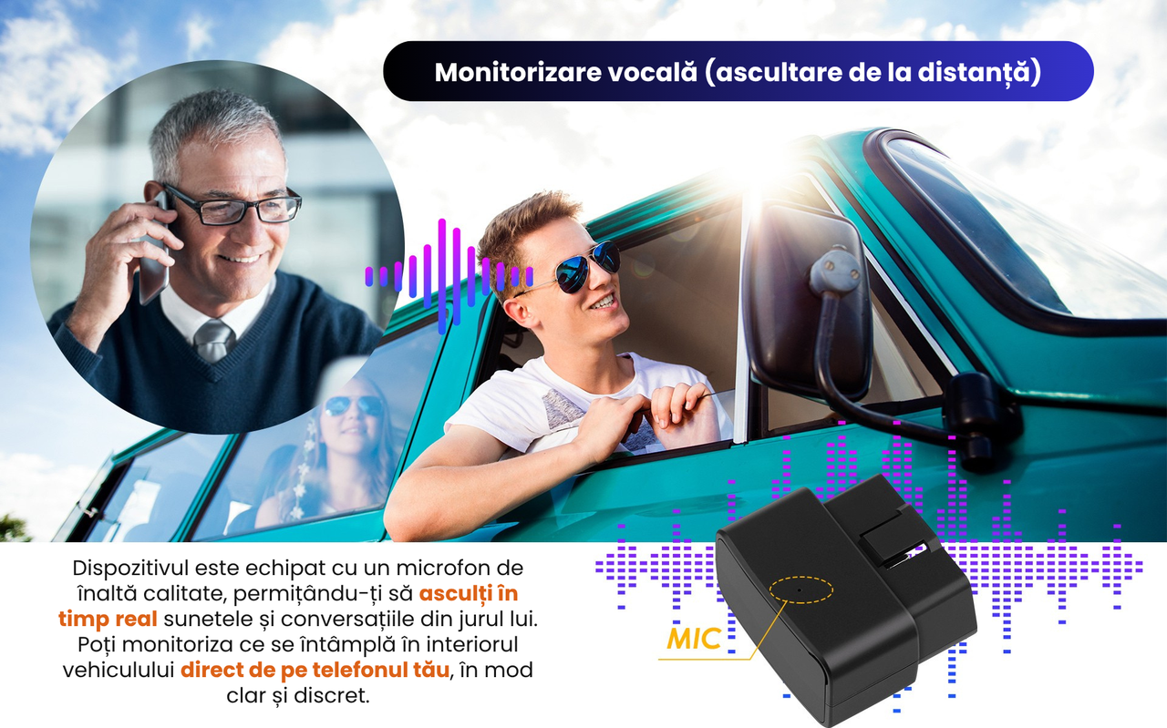 Dispozitivul este echipat cu un microfon de inalta fidelitate, ce permite monitorizarea vocala la distanta, in timp real. Poti asculta discret conversatiile si sunetele din interiorul vehiculului, indiferent unde te afli. Totul se face clar, sigur si complet silentios, direct printr-un apel telefonic. Ideal pentru parinti, firme de transport sau situatii in care siguranta este esentiala.