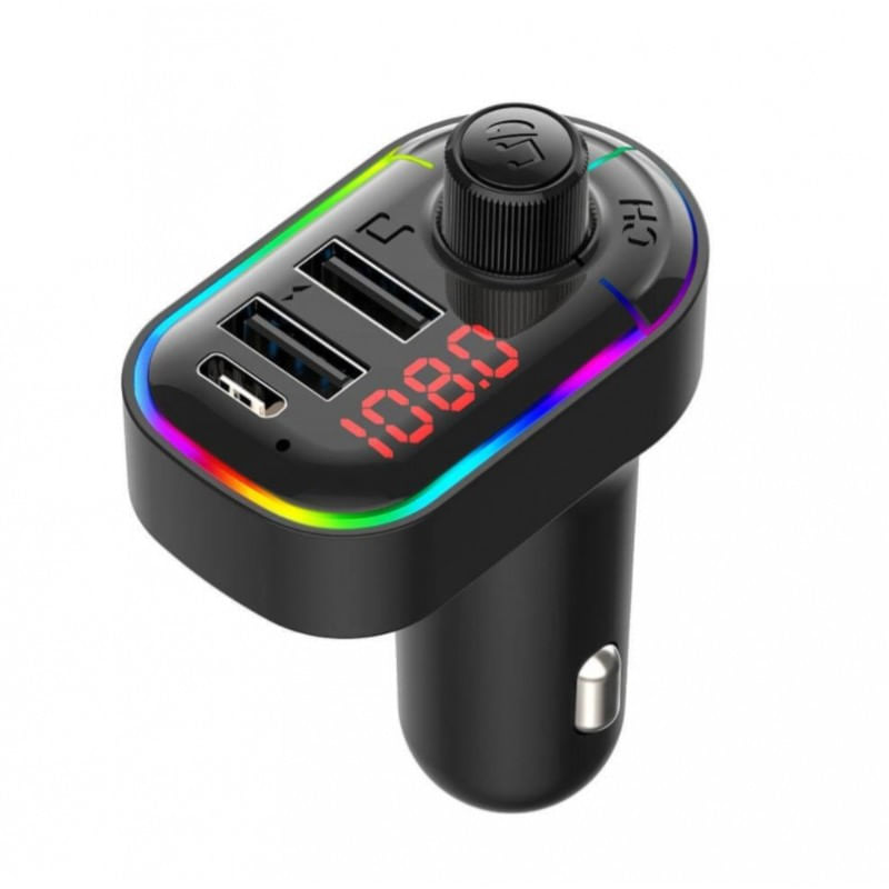 Modulator FM, Bluetooth Led RGB 5.0, MP3 player, Handsfree, Incarcare Type C, 2 x Port USB, LED, Negru