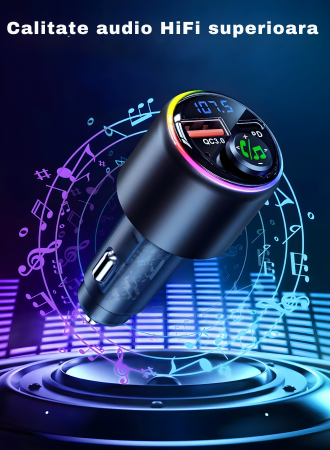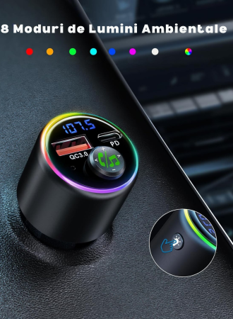 Modulator FM universal cu Bluetooth, redare muzica, apeluri hands-free, USB-A si USB-C pentru incarcare,Android si iOS Modulator FM universal cu Bluetooth, redare muzica, apeluri hands-free, USB-A si USB-C pentru incarcare,Android si iOS