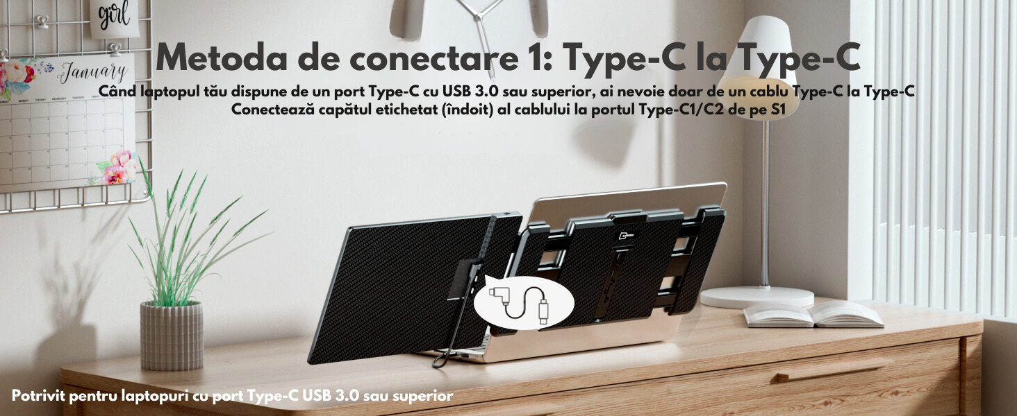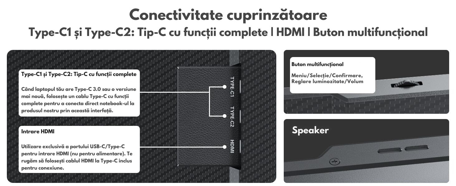 - USB-C + HDMI + Alimentare Externa: Pentru laptopurile cu putere insuficienta.